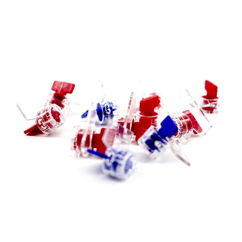1.Securing the seal is a precise process that involves threading the wire through the dual openings in both the transparent and colored components. By turning the insert in a clockwise direction, the wire is intricately twisted around the inner cores until a secure connection is established. Following this, the handle is intentionally detached.